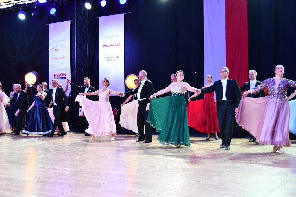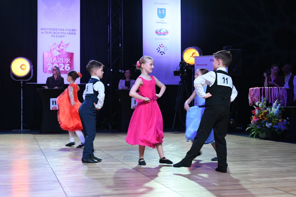 Od sobotniego ranka trwała rywalizacja w kolejnych etapach eliminacji Mistrzostw Polski – od 1/8 finału po zmagania półfinałowe. Poloneza z udziałem wszystkich uczestniczących w Mistrzostwach tancerzy, który tradycyjnie otwiera popołudniową galę finałową, poprowadziła para niezwykła – ojciec i córka. Michał Molski (obecnie w kat. VII) uczestniczył w pierwszej edycji Mistrzostw w roku 2001, reprezentująca najmłodsze pokolenie Julia Molska rywalizuje w I kategorii. Ciągłość, przekazywanie pasji i kultywowanie tradycji – razem ucieleśniali te wartości, które stoją za ruchem tańców polskich. Po nich główne role przejęli oficjele, na czele z otwierającym finały 25. Mistrzostw Polski Wójtem Gminy Wieliszew Pawłem Kownackim oraz przedstawicielami partnerów. Głos zabrali Członek Zarządu Powiatu Legionowskiego (partner Mistrzostw) Marcin Fabisiak oraz Luiza Gąsiewska, która odczytała list od Prezes Polskiej Organizacji Turystycznej (partner główny Mistrzostw) Magdaleny Krucz. Na ręce organizatorów list złożył również Marszałek Województwa Mazowieckiego Adam Struzik (partnerem wydarzenia był Samorząd Województwa Mazowieckiego). Partnerów oraz sponsorów tegorocznego Mazura uhonorowano pamiątkowymi medalami. W trakcie finałowych rozrywek podziękowano również 22 sędziom (i 2 skrutinerom) na czele z sędzią głównym Janem Łosakiewiczem (prezydentem Polskiej Sekcji CIOFF®) oraz 54 instruktorom. Przedstawiciele Komisji Tańców Polskich Polskiej Sekcji CIOFF® (przewodniczący Jan Galasinski i jego zastępczyni Anna Teperek) wręczyli nagrody rankingowe za rok 2025 dla najlepszych par i zespołów w poszczególnych kategoriach wiekowych. Kolejne bloki rywalizacji sportowej uświetniły występy artystyczne gospodarzy – Zespół Tańca Ludowego „Promyki” zaprezentował grupowe choreografie: „Obrazek z okresu Księstwa Warszawskiego” (grupa dorosła) oraz tańce i zabawy regionu opoczyńskiego pt. „Tańcowały Dwa Michały” (grupa reprezentacyjna). Zakończeniem finałowej rywalizacji, której towarzyszyła muzyka na żywo w wykonaniu orkiestry kameralnej pod kierownictwem Piotra Ptaka, była uroczysta dekoracja finalistów oraz tradycyjne pokazy mistrzów.